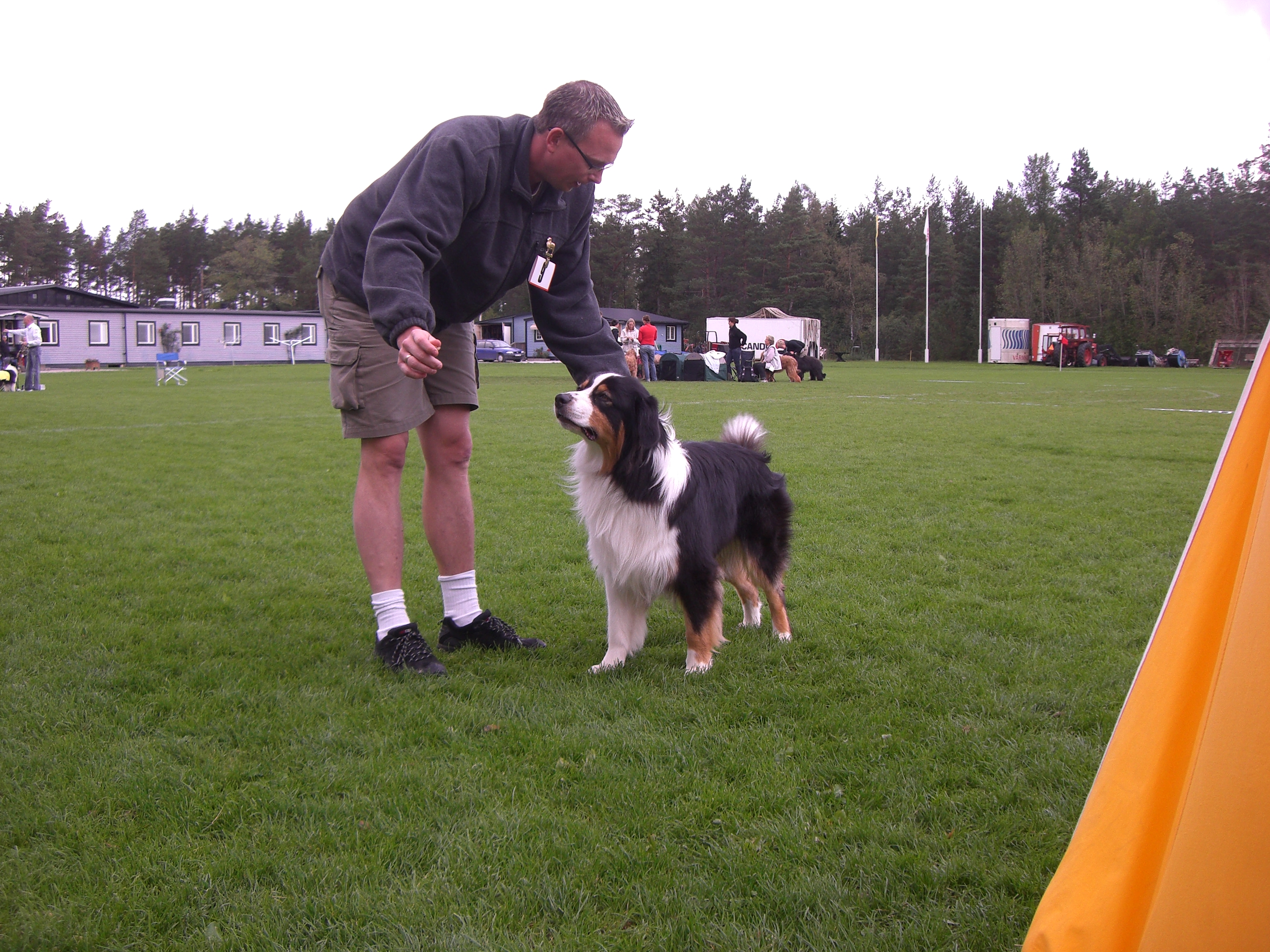 Ja, i söndags körde Mattias mig och Nea genom Härskogen till Linda & Jojje. Där åkte vi vidare mot Sofiero. När vi väl kom dit fick vi höra att vi var jätte sena och paniken satte in med fumlande av kläder, tält och hundar vilket inte alls var speciellt roligt. 10 hundar hade blivit fel och vi skulle in tidigare än väntat. Tältet ville inte alls vara med på den lilla snea plätt vi hade så det åkte snabbt ner igen men som tur var blev vi inbjudna av Anna-Lena att dela deras tält. Tack!