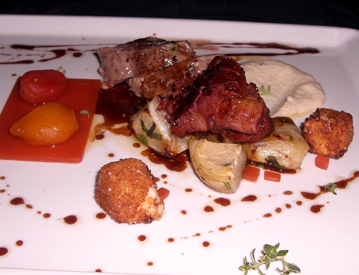 Mattias åt Kalvytterfilé och kind, marinerade ekologiska timater, kronärtskockpuré, polenta & rökt citrontimjanvinaigrette