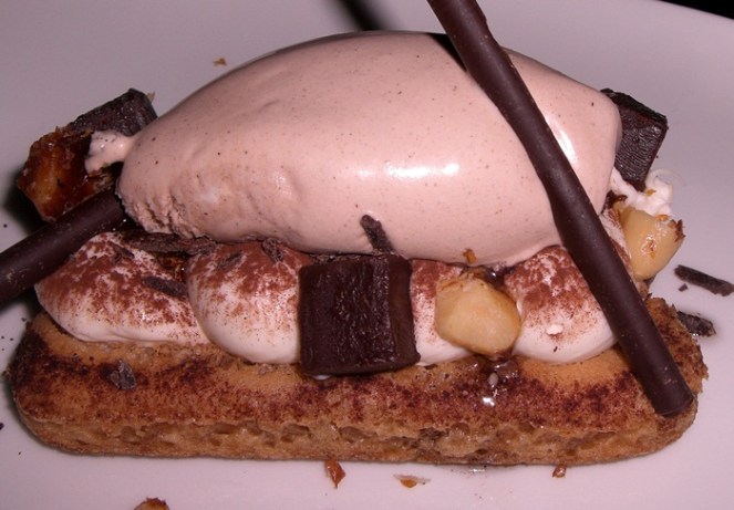 Mattias valde Tiramisu med hasselnötsglass och chokladfudge till efterrätt
