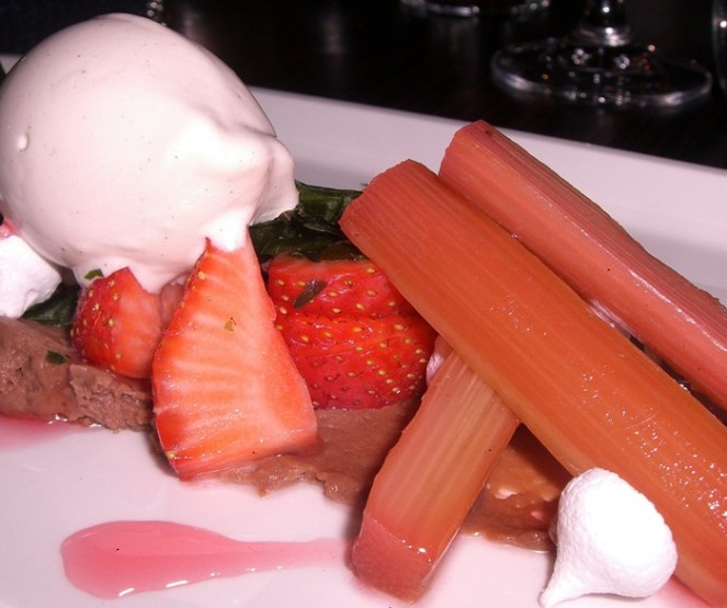 Och jag åt Basilikamarinerade jordgubbar, vaniljglass, bakad rabarber, mjölkchokladkräm & youhurtmaränger.