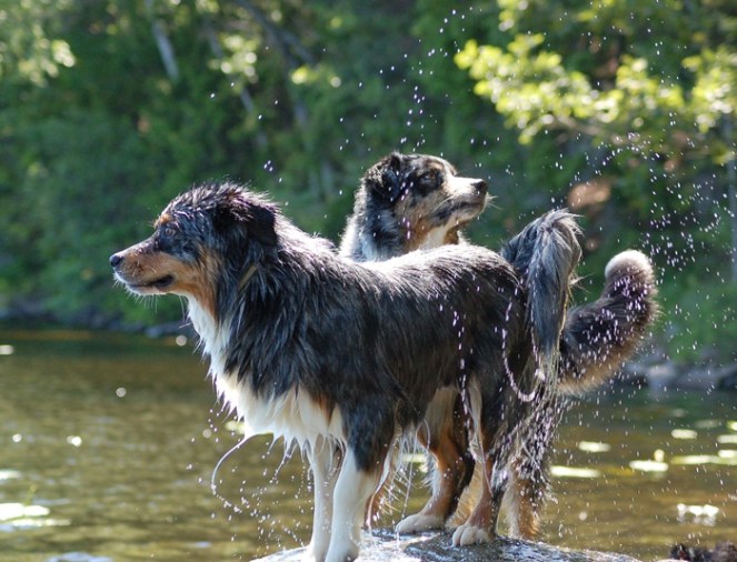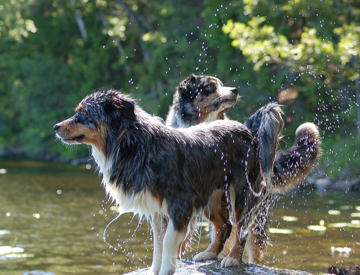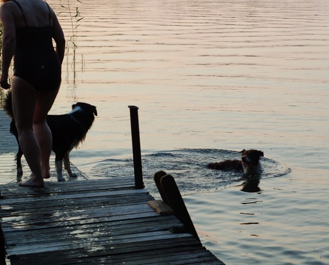 Igår hade vi både dopsamtal inför helgen och besök på Bvc. Tindra är nu hela 60cm lång och väger 6110g min stora tjej! Efter det mötte vi upp Sandra & Andreas som hade vägarna förbi härskogen där vi lät hundarna bada och busa självklart var både Tindra och Sam med.