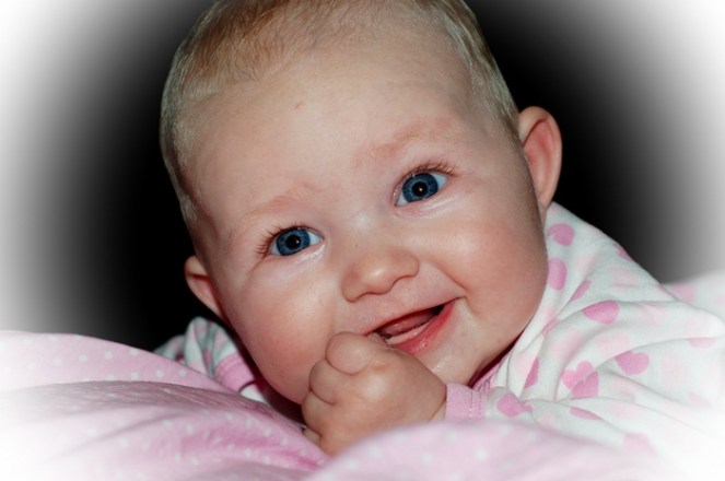 Igår kväll spydde Tindra 2ggr och senare på natten spydde hon ytterligare 2ggr (hon spyr i vanliga fall nästan aldrig) Jag och Mattias satt uppe någon timme med henne inatt och efter att vi kunde utesluta feber och lite annat somnade vi om alla 3. Idag har jag varit halvt zombie och Tindra har varit väldigt känslig. Mitt i allt började jag studera henne och insåg att hon faktiskt trycker upp fingrarna i gommen hela tiden och visst kan man se 2 små vita prickar i övre tandraden!! Vet inte varför men jag har trott att de första tänderna ska komma nertill och har därför inte ens funderat på att de kan komma upptill.