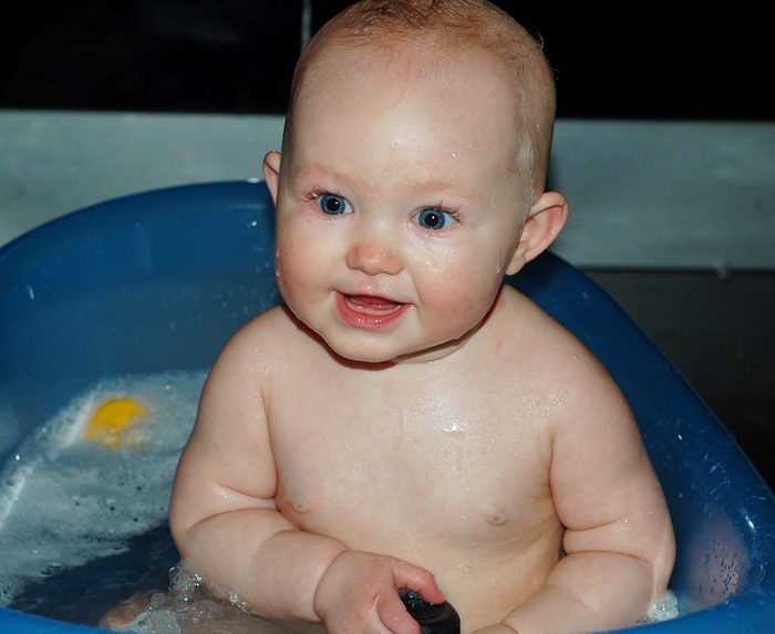Innan vi skulle göra i ordning för natten ville jag hinna diska lite och eftersom Mattias var ute och skottade snöööö så fick Tindra sitta bredvid i sin stol och äta majskrokar. Hon tycker det är super kul att gegga runt med dom och smaskar och kladdar för glatta livet…min sötnos! Vi var tvungna att ta ett bad för att hon var så kladdig *hihi*