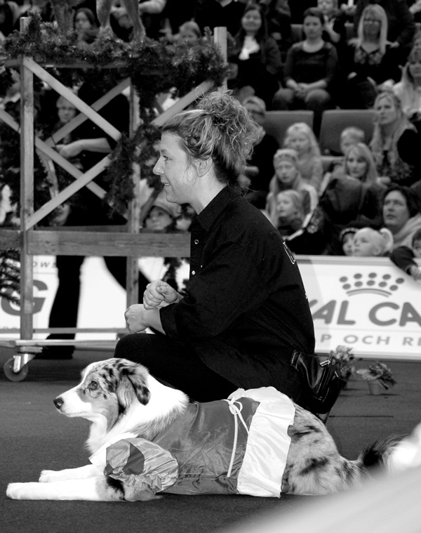 Så grymt imponerad av dessa hundar och dess förare!! Vilken underhållning och vilket jobb dom lagt ner!! Och roligast av allt är att vi stolta kan säga att snövit är en god vän!! Har ni möjlighet att besöka mässan i helgen så snälla gå och se den kl: 13.00 lördag och söndag, jag lovar att inte ett enda öga är torrt.