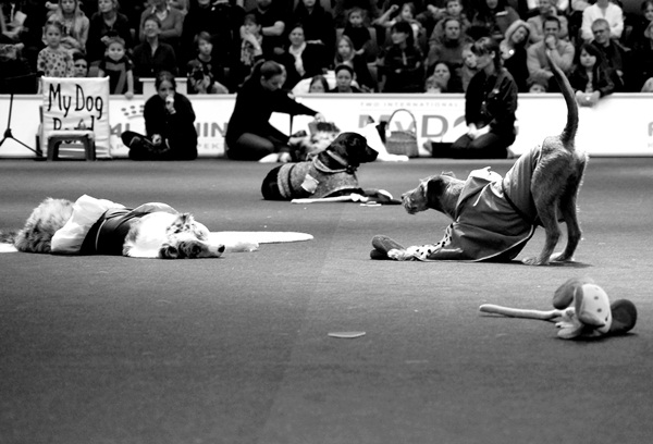 Hundakademin visade som vanligt upp lite roliga trix i stora ringen och efter det bjöd dom på hundteater, något som blivit en jätte succé!!