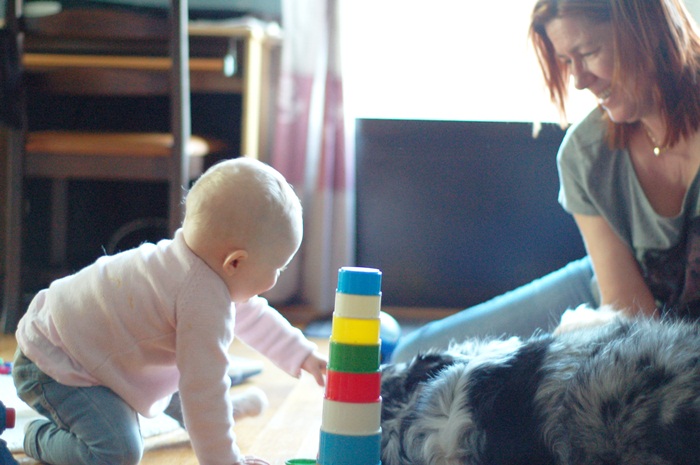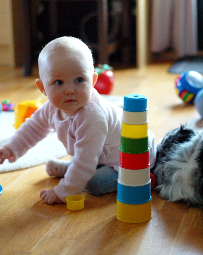 Efter ca 1 timme kändes allt väldigt bekant och den stora saknaden vällde över mig. När jag senare ringde hem och kollade hur de hade det där hemma fick jag gråten i halsen när Tindra högt och glatt tjöt ”Daaaa daa da” i bakgrunden ville jag bara hem! Det finns ju de som tycker det är skönt att komma hemifrån och få träffa folk på jobbet men jag är tydligen ingen sådan eller så kommer det kanske längre fram. När jag äntligen skyndat mig hem möttes jag av ett stort leende och en nybadad trött liten tjej. Välling i mammas famn och efter en stund låg hon och sov på mig. Lyckan var total!!