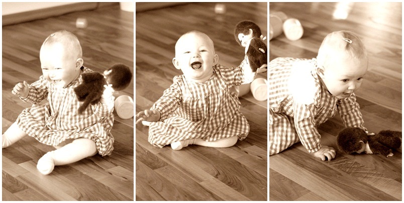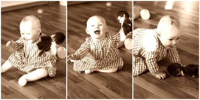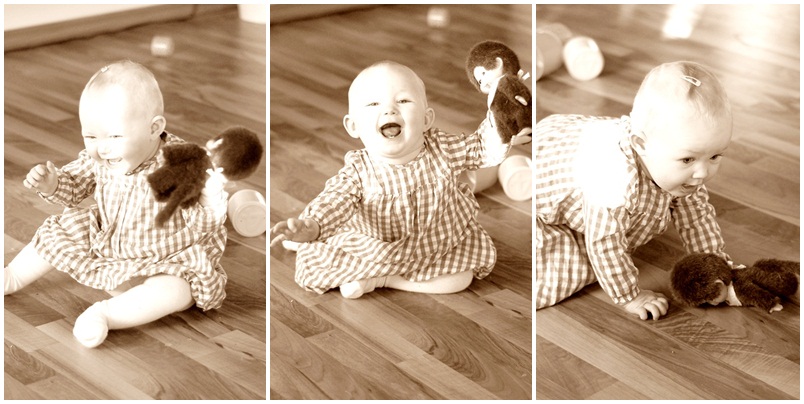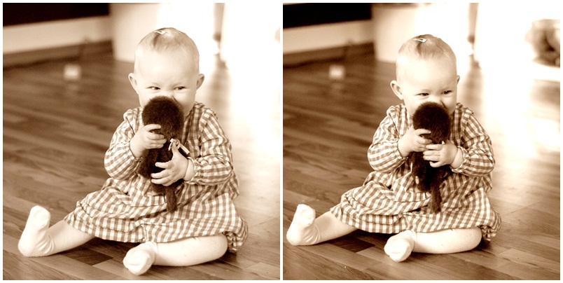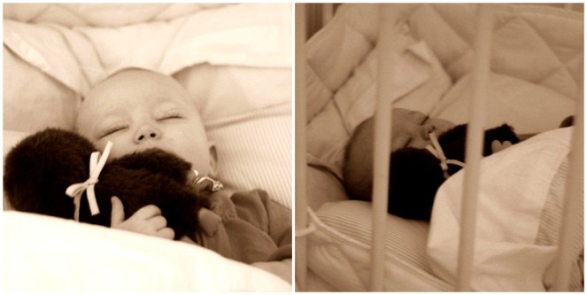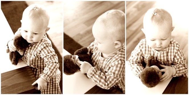 Tindra har fått en nya favorit här hemma. I julklapp fick hon en liten Monchichi av sin moster och för någon vecka sedan fick hon upp ögonen för den. Hon kryper runt med den överallt och idag ville hon till och med ha med den i sängen när hon skulle sova. Hon låg och pratade lite med den och sen somnade hon…sötnosen!