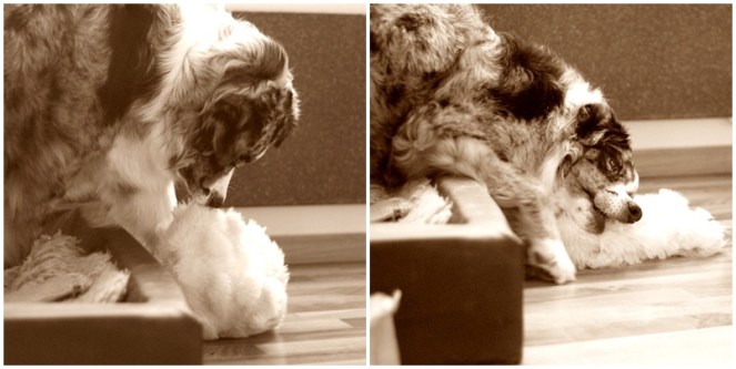 Nea har ju också sina favoriter och är det inte den rosa leksaken som gäller så är det den stora luffsiga kaninen som också inköptes på Mydog. Undra jag om hon har nån aning om att hon snart ska få dela med sig av alla roliga saker hon har??