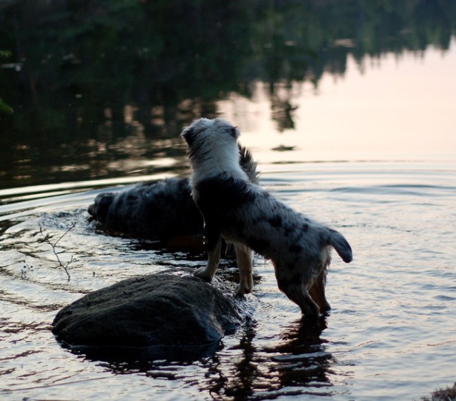 Jag åkte bort till Härskogen med mina blå för att sätta igång Neas hemmasim nu ikväll och gissa om hon var sugen på att få hopa i plurret :0) När vi satt igång och Nea tagit mod till sig att slänga sig ut efter leksaken så tyckte Tira att det var värt ett försök och hon tog sats och flög ut i vattnet och rakt ner under ytan, upp med ansiktet och sippade luft för att febrilt leta sig in mot kanten igen, hahaha!! Min söta lilla råtta, hon är så långbent så man kan inte annat än att skratta åt henne.