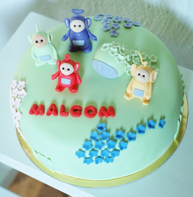 I fredags hade jag en tårtbeställning med Telletubbies till en liten kille som fyllde år. Fotade tidigt på morgonen så bilderna blev ju sådär men här är den i alla fall. Vaniljbotten med blåbärsmousse & vaniljkräm