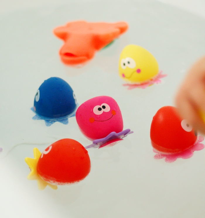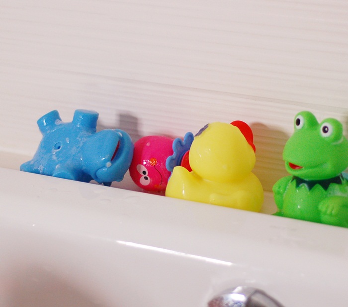 När vi tappar ut vattnet lägger hon upp alla sina badleksaker på kanten och utbrister ”uuuuttt” när vattnet runnit ut och är slut…