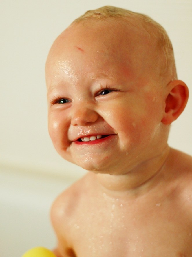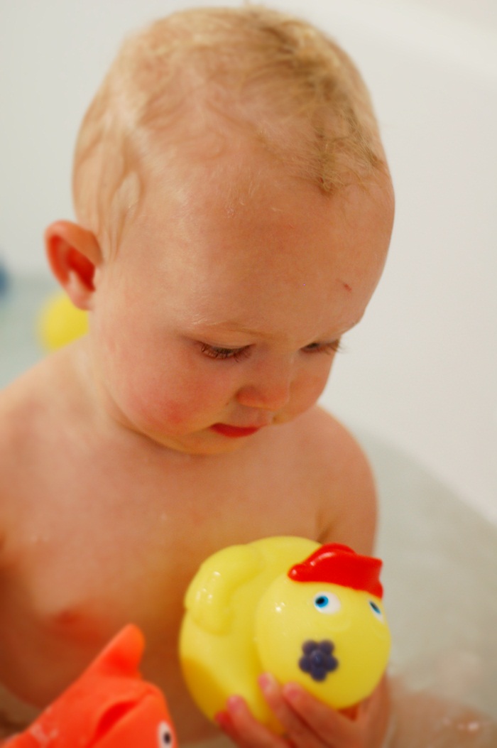 Trots att vårt badrum fortfarande saknar belysning så använder vi det en hel del. Att ha ett badkar är guld värt med en badtokig liten 1 åring. Hon pratar, skriker och plaskar högt och lågt av ren lycka när hon kommer i vattnet. Mysigaste i världen är hon!!