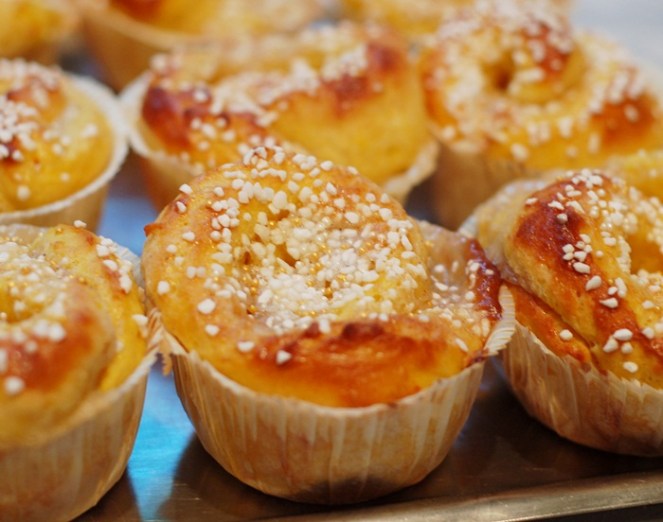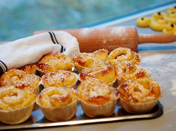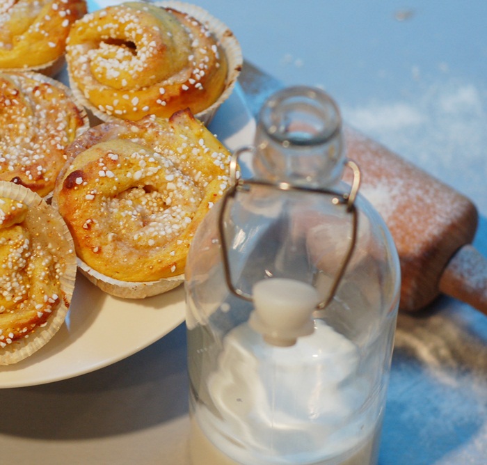 Inte så svårt att lista ut att det blev lussebullar idag, eller hur?! Som jag har längtat efter dessa härligt fluffiga gyllenbruna skapelser. Bara doften här hemma får en att bli alldeles lycklig. Jag gjorde en sats med marsipan & vaniljfyllda lussebullar och dom är så kladdiga att man lätt skulle kunna använda dom som klister, precis så vi gillar dom allra bäst!!