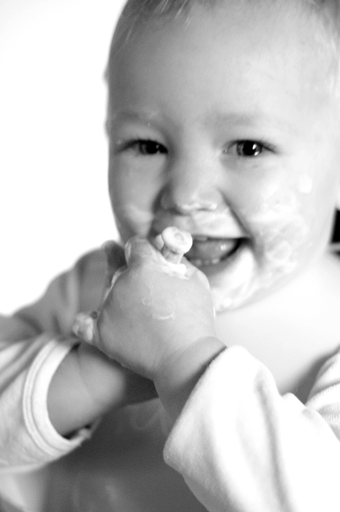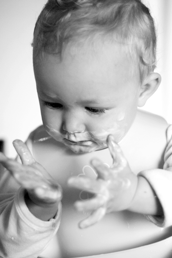 Tindra ville äta sin frukost på the old fashion way med hjälp av händerna. Finns det något roligare än att äta cherioos med fingrarna?? Dom passar ju perfekt på hennes ytte pytte fingrar…