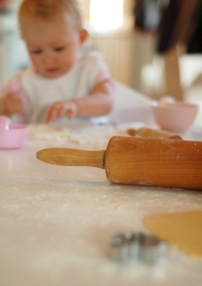 Efter att vardagsrummet mer eller mindre återgått till att vara det mest städade rummet i huset så tog jag och Tindra en paus för lite kakbak. Hon har aldrig varit med mer än att hon hjälp mig lite så idag gjorde vi lite enklare mördegskakor bara för att hon skulle få vara med och träna lite innan det blir pepparkaksbak…