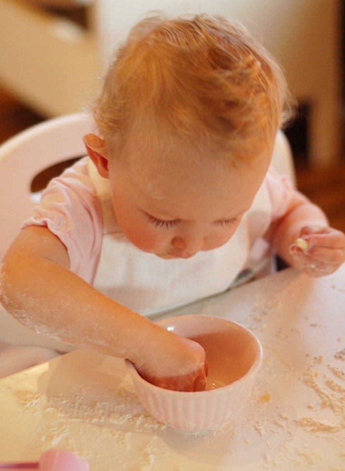 Det där med att baka med Sam blir spännande. Tror han stoppar precis allt i munnen. 😉