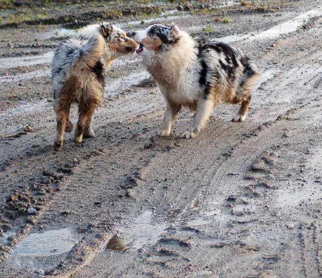 Tog en paus och gick en sväng med hundarna, något som ganska fort förvandlades till ett enda stort härligt gyttjebad. Om hundarna var lyckliga med dagens val av promenadväg, tja det skulle man ju kunna säga utan att ens ljuga lite…