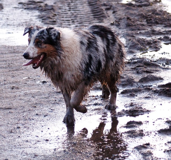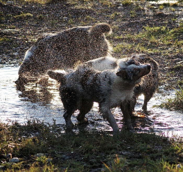 Som tur är har jag just nu 3 rena och torra hundar här hemma som ligger och sover på rad. Vill inte ens tänka på hur mycket sand och grus som ligger i avloppet idag.