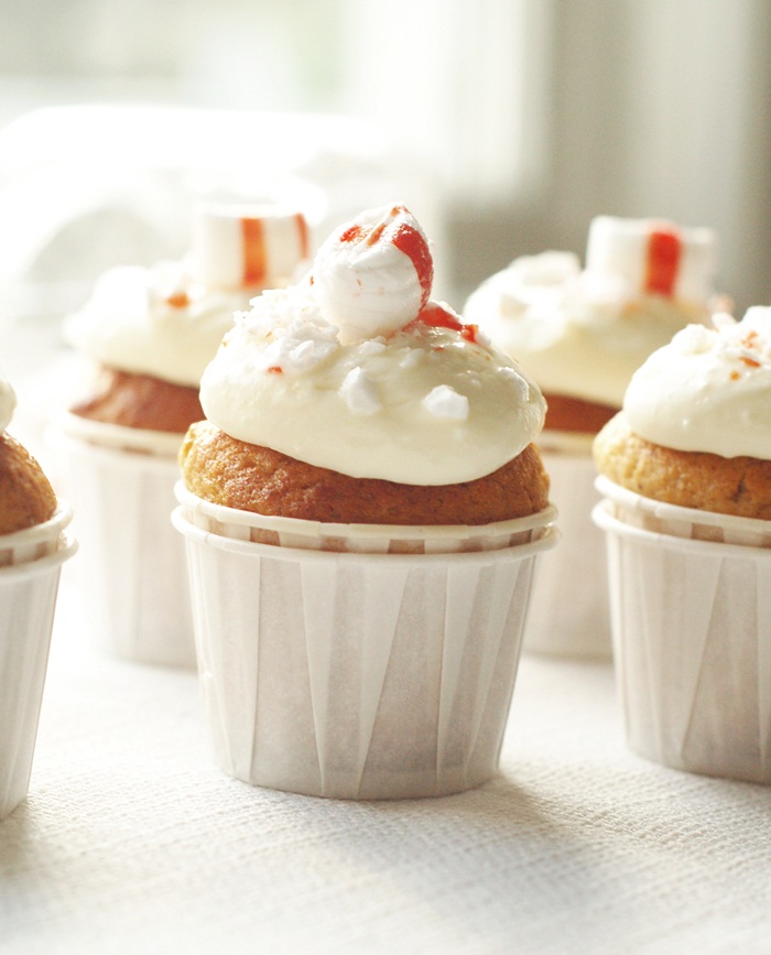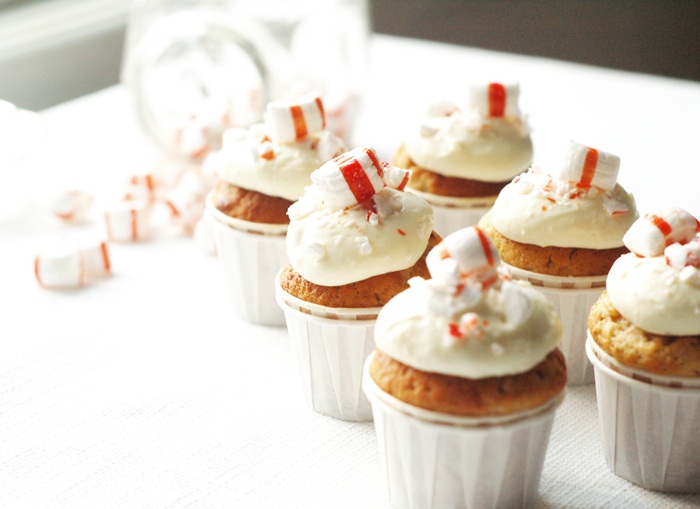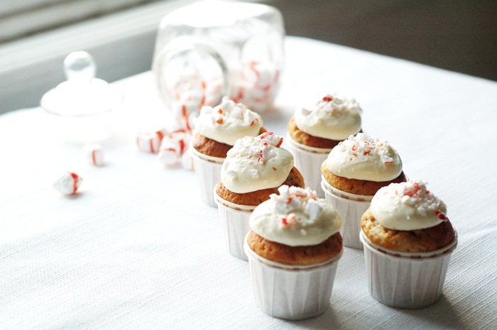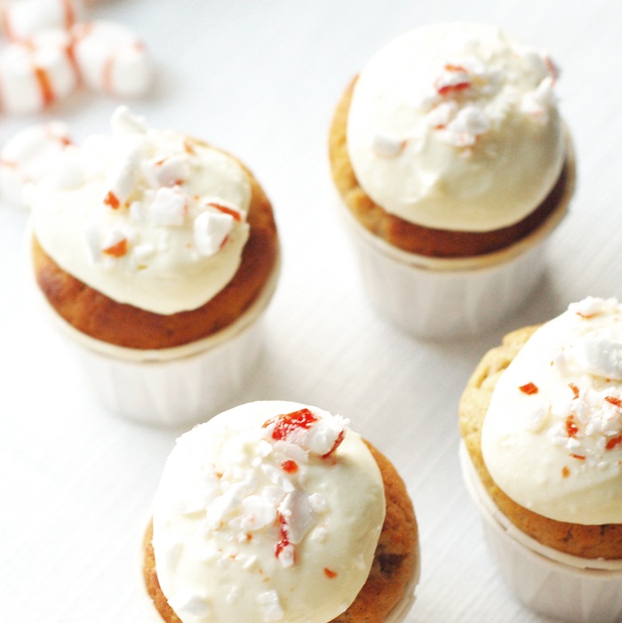 Jag gjorde mini cupcakes med pepparkakssmak & vitchokladkräm toppade med polkakross. Hur goda som helst!!