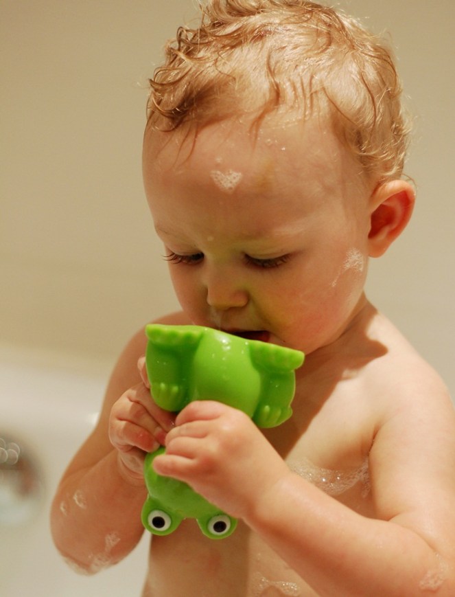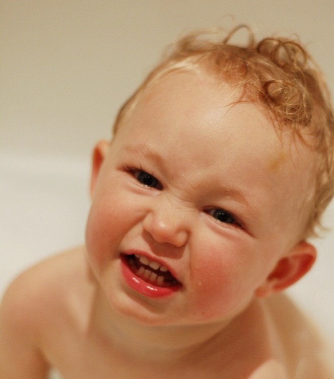 Jag hämtade upp en sprudlande glad liten gullunge på dagis idag som sovit nästan 2 timmar på vilan så utsövd och glad var hon. Och för en gång skull hade hon bråttom hem nästan som att hon kände på sig att det var jullov. Innan läggdags gick vi in och badade och jag bara måste visa e vilket underbart humör hon varit på idag!