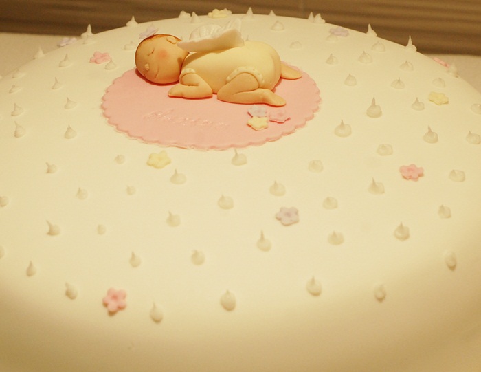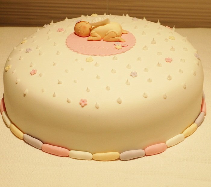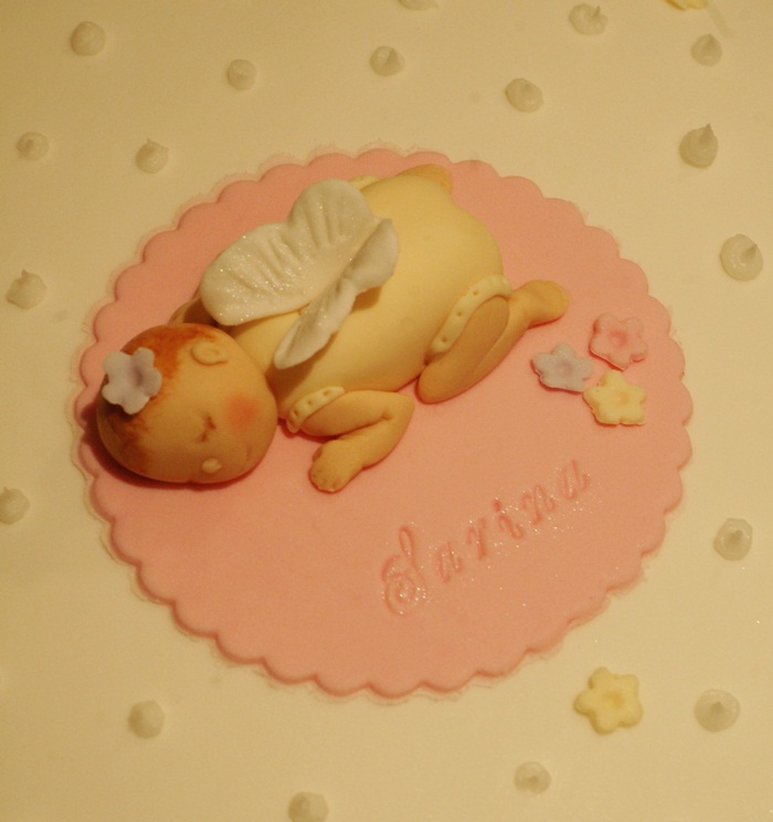 Den första var en tårta till en babyshower där ett par länge försökt bli gravida och äntligen väntar/väntade en liten flicka (tror hon nog tittat ut vid det här laget) som fått namnet Sarina