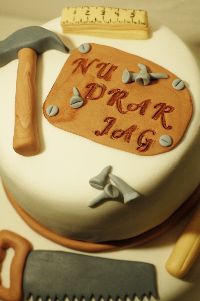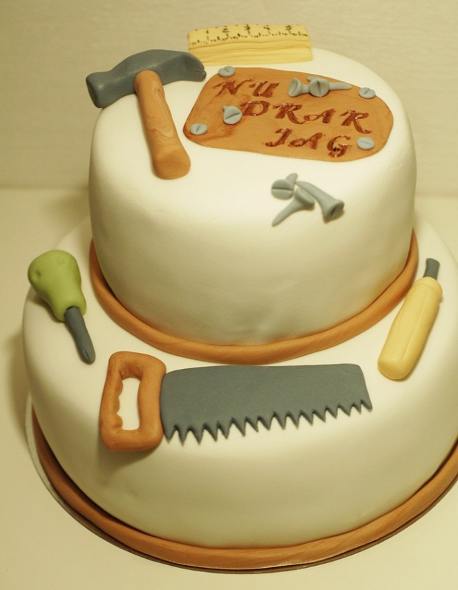 Min kära sambo gjorde i fredags sin sista dag på sitt gamla jobb och självklart skulle han ha med sig en tårta för att fira detta!! Svårt att gissa att han är snickare va!?