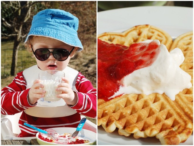Söndagen hade vi planer för både besök av Maria & Amy och lite senare lunch ute hos Sandra & co men tyvärr mådde inte Tindra speciellt bra så det blev till att avboka och lite senare åkte jag och Theo ut till S för lite våffellunch bara vi två. En mysig stund ute i solen med en massa härligt prat och med mig hem fick Vin äntligen följa med…