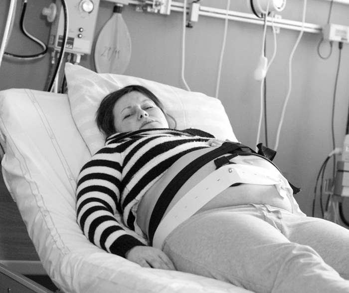 Väl inne mätte hon hjärtljuden och värkarna och bekräftade att förlossningen var på gång…