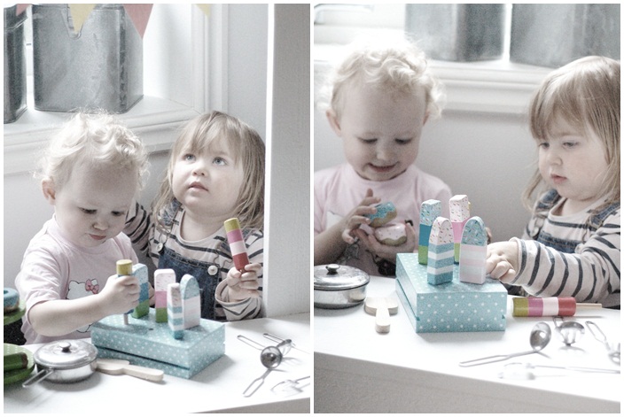 Igår kväll fick Tindra besök av sin lilla bästis Amy som var här och höll Tindra sällskap i hennes kiosk där de åt kakor och glass ( allt i trä såklart ) Dom är ju helt underbart söta när dom leker ihop. Och idag pratar hon om henne hela tiden och går igenom vad dom lekte med igår…