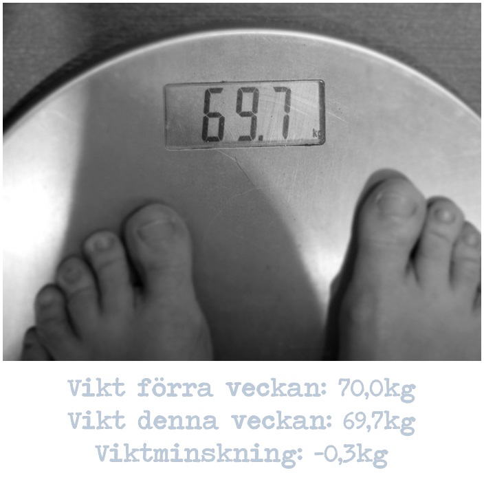 Och idag är det ju torsdag vilket innebär vägning och eftersom att jag haft så ont den här veckan har jag slarvat jätte mycket med maten och förväntade mig en viktuppgång på nått kilo så när jag ställde mig på vågen kände jag hur smilbanden drog ihop sig för vågen stannade på 69,7kg!!! En liten minskning på -0,3kg som denna gången känns stort då jag äntligen ligger i 60 kilos klassen och en gång för alla har sagt hej då till 70 kg!!!! Helt otroligt vilken känsla!! Nästa delmål blir 65kg och det känns helt underbart just nu…