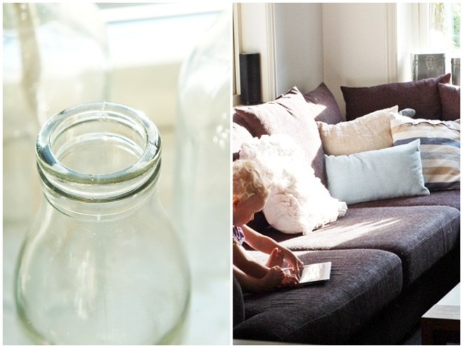Liten spela Nicke nyfiken på Ipaden medan mamma städar. Den gamla mjölkflaskan hittade jag på loppisen i Höganäs i helgen, helt underbar…