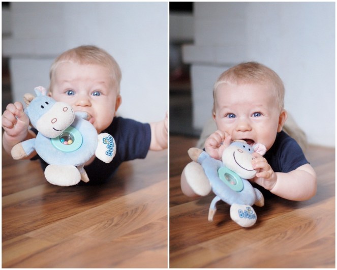 Nu för tiden spenderas en hel del tid på golvet med en liten som försöker bemästra konsten att krypa! Han drar upp benen under sig och har redan nu förstått hur det ska gå till men tålamodet räcker inte riktigt till än och det resulterar oftast i att han i stället snurrar runt i cirklar. Jag passar på att njuta av den här tiden när man faktiskt kan sätta ner honom utan att oroa sig vad han ska få tag på, för det där med babysäkra har verkligen inte hunnits med och hur sjutton det ska gå ihop med storasysters alla miljoner leksaker som dras fram och tillbaka i huset under dagarna har jag ingen aning om…