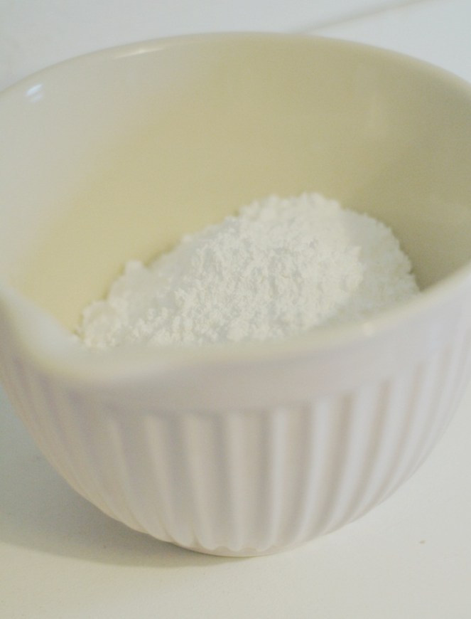Häll i mandelmjöl och florsocker i en skål