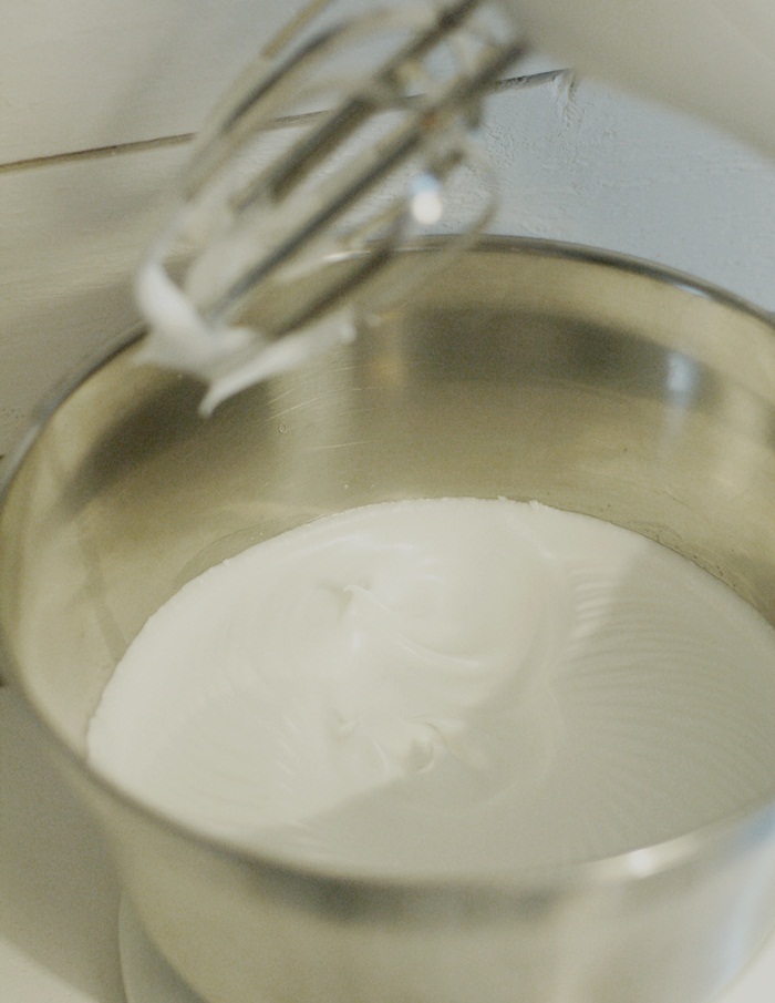 Vispa äggvitan till ett lätt skum och tillsätt sockret lite i taget. Vispa tills det blir en riktigt fast maräng.