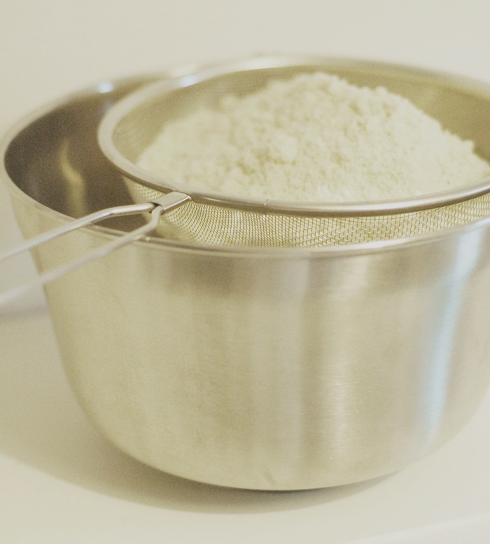Sila sedan ner mandelmjölet och florsockret och släng ev stora bitar som ligger kvar i silen.