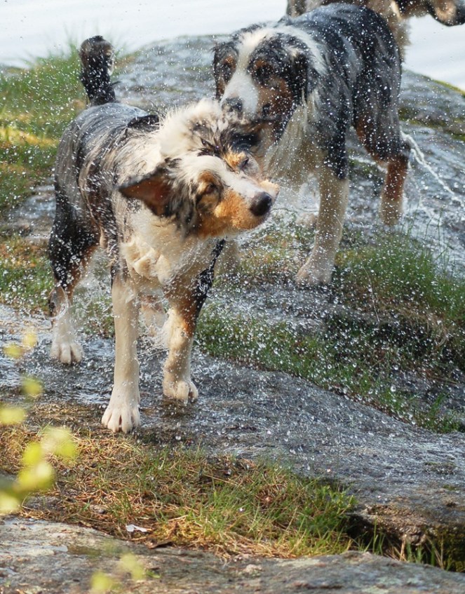 Har äntligen orkat gå igenom bilderna från midsommarafton. Tänkte dela upp inläggen så vi börjar med hundarnas midsommaraftonsmorgon, bad och bus för hela slanten. Eftersom vi numera åker iväg och dansar kring stången med barnen får hundarna sitt på morgonen vilket är rätt skönt innan det blivit för varmt. Ja i år hade vi riktigt tur med vädret! Inte ofta det är sol och värme denna dagen.