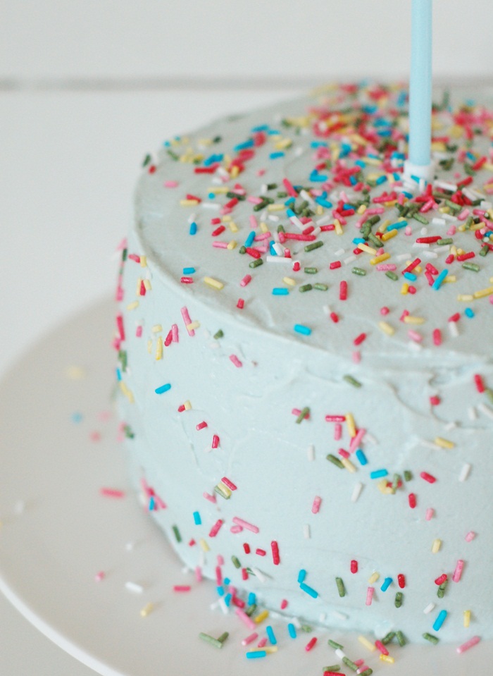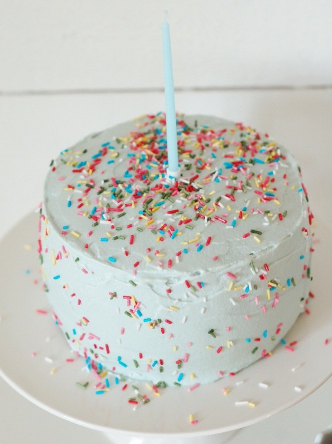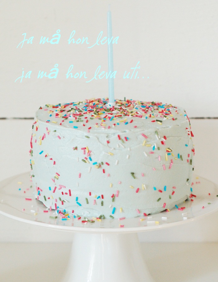Jag bakade en enklare tårta med citronkaka och vanilj & mandelfrosting