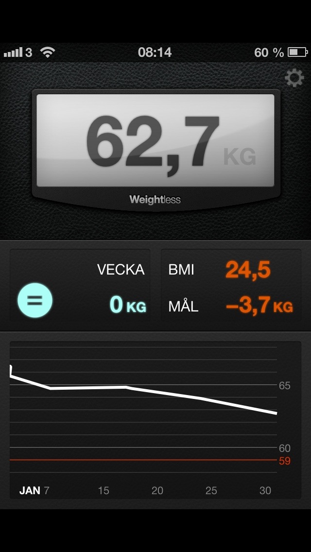 Vikt i morse -63,9 kg så det blev en viktminskning tillslut på -0,9 kg och just nu känns det otroligt skönt att se siffror på vågen som jag inte sett på väldigt länge!