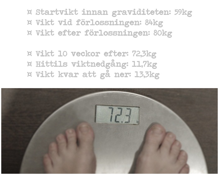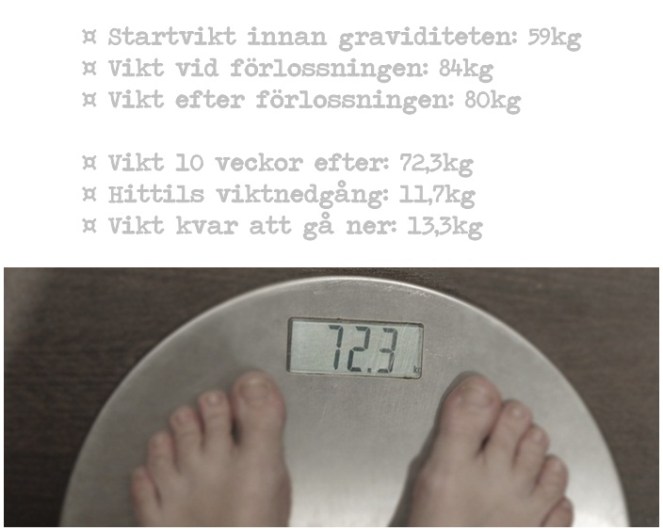 Under hela semestern har jag ätit lite som jag velat och inte lagt någon större vikt på vikten. Och nu såhär 3 veckor senare så känns det kan jag lova. Sist jag vägde mig hamnade vågen på 67,9 kg och jag hade gått upp 0,3 kg vilket inte är så mycket att klaga på men under veckorna har det blivit betydligt mer än så så från och med i måndags gick jag tillbaka till mina vanliga rutiner och ser faktiskt fram emot torsdagens vägning oavsett om den visar plus eller minus. Just bara för att se vart jag landar så jag kan ta nya tag! Och en 5 månaders bild på kroppen efter förlossningen kommer ju också så klart!